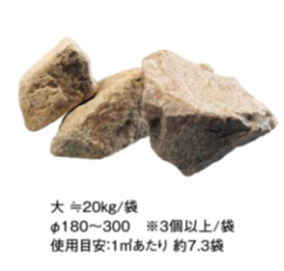 和石は天然の乱石のため、表記の寸法を超えるものが混ざる可能性があります。またサイズの割合が偏る場合があります。