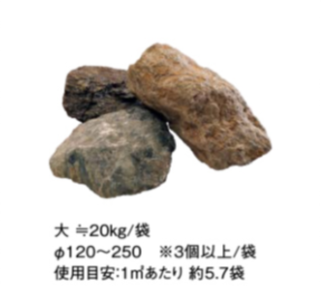 和石は天然の乱石のため、表記の寸法を超えるものが混ざる可能性があります。またサイズの割合が偏る場合があります。