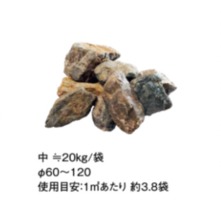 和石は天然の乱石のため、表記の寸法を超えるものが混ざる可能性があります。またサイズの割合が偏る場合があります。