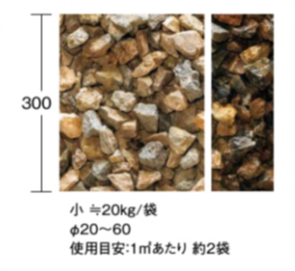 和石は天然の乱石のため、表記の寸法を超えるものが混ざる可能性があります。またサイズの割合が偏る場合があります。