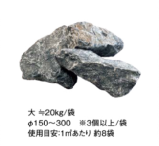 和石は天然の乱石のため、表記の寸法を超えるものが混ざる可能性があります。またサイズの割合が偏る場合があります。