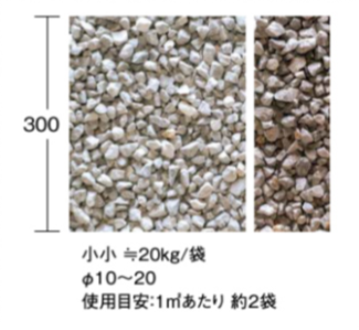 和石は天然の乱石のため、表記の寸法を超えるものが混ざる可能性があります。またサイズの割合が偏る場合があります。