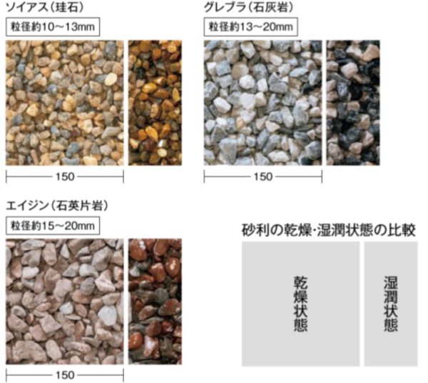 数種類の天然石を混合し、色合いに彩りを加えた敷き砂利「アコルデストーン」。
